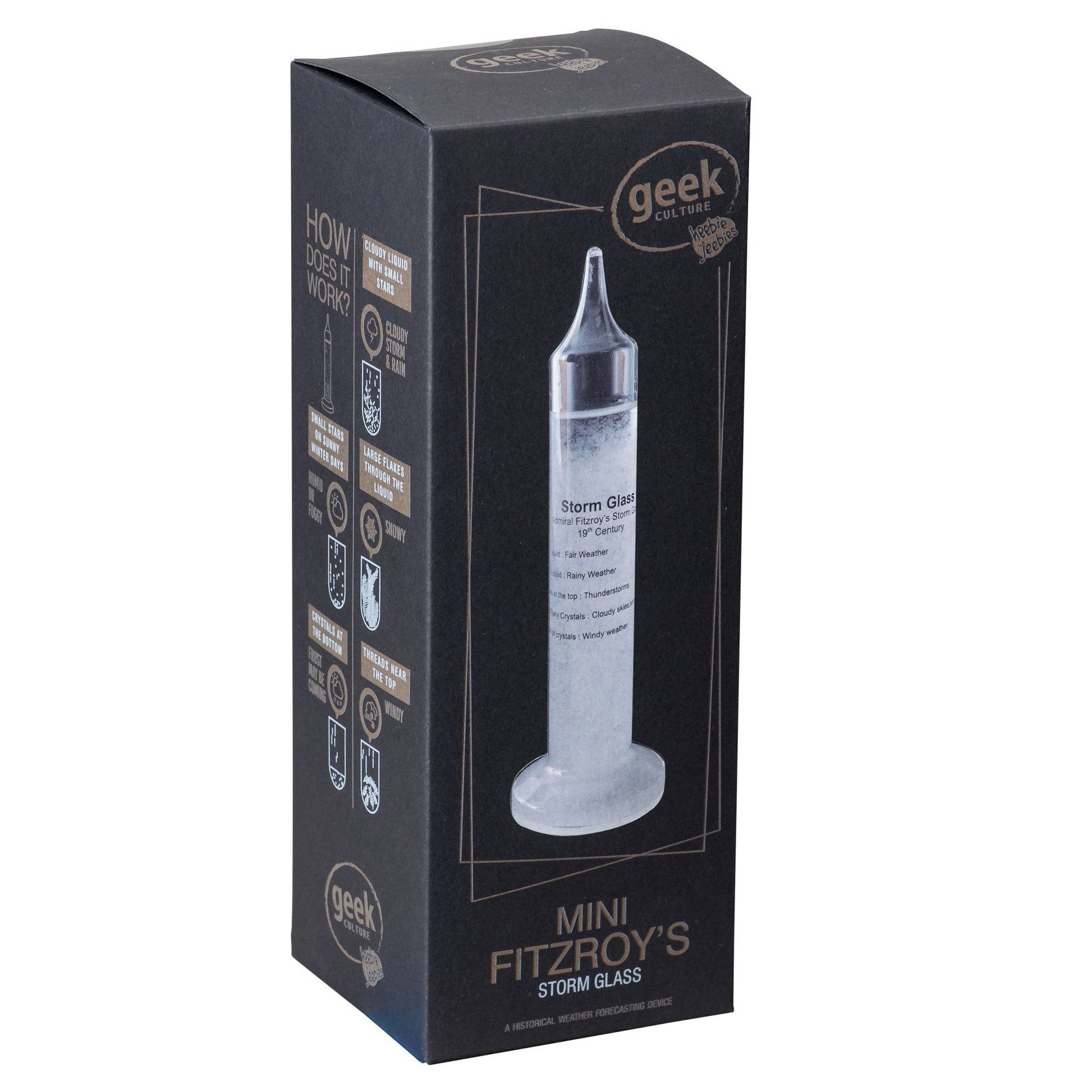 How the Storm Glass works is still a mystery, but it is believed that electromagnetic changes in weather patterns activate the crystals inside (sealed glass chamber fill with crystals when air pressure decreases).